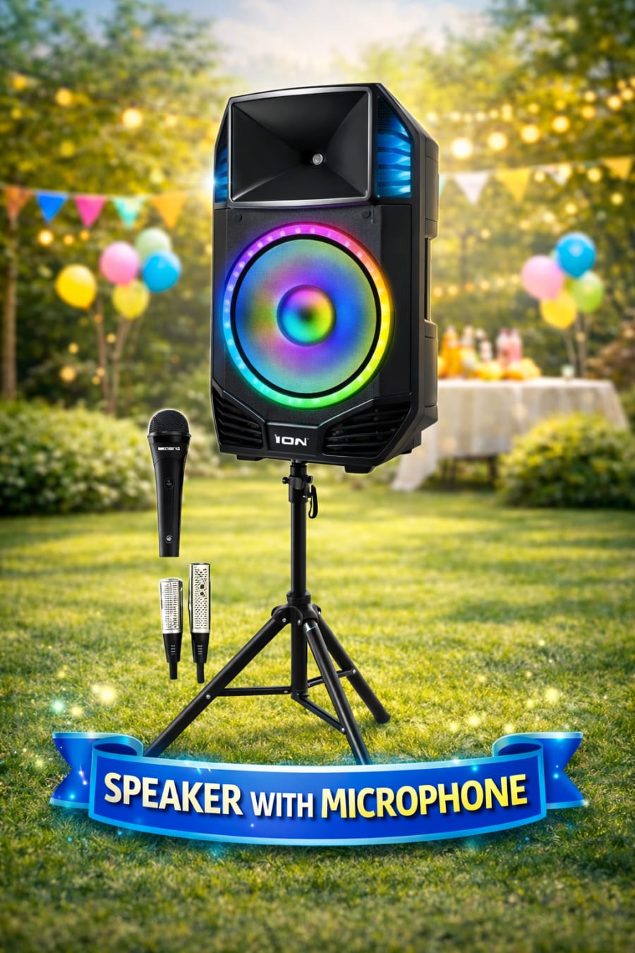 🔊 Take your event to the next level with our Bluetooth Speaker & Microphone combo! 🎤