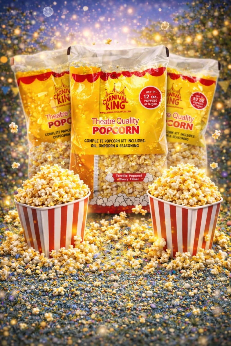 This add-on includes 12 oz batches of fresh popcorn along with 10 individual 2 oz paper serving bags, making it a perfect snack option for guests to enjoy during your event.